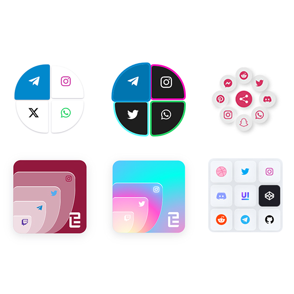 دکمههای شبکههای اجتماعی با طراحی یکدست، مدرن و چشمگیر. آیکنهایی با استایلهای خلاقانه هر بخشی از سایت رو حرفهایتر و جذابتر میکنن.